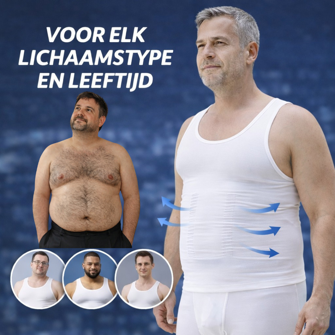 Oog direct 5-10kg lichter. Let op! Dit is een zeer sterk corrigerende hemd. Kies voor een maat groter dan je gewend bent.