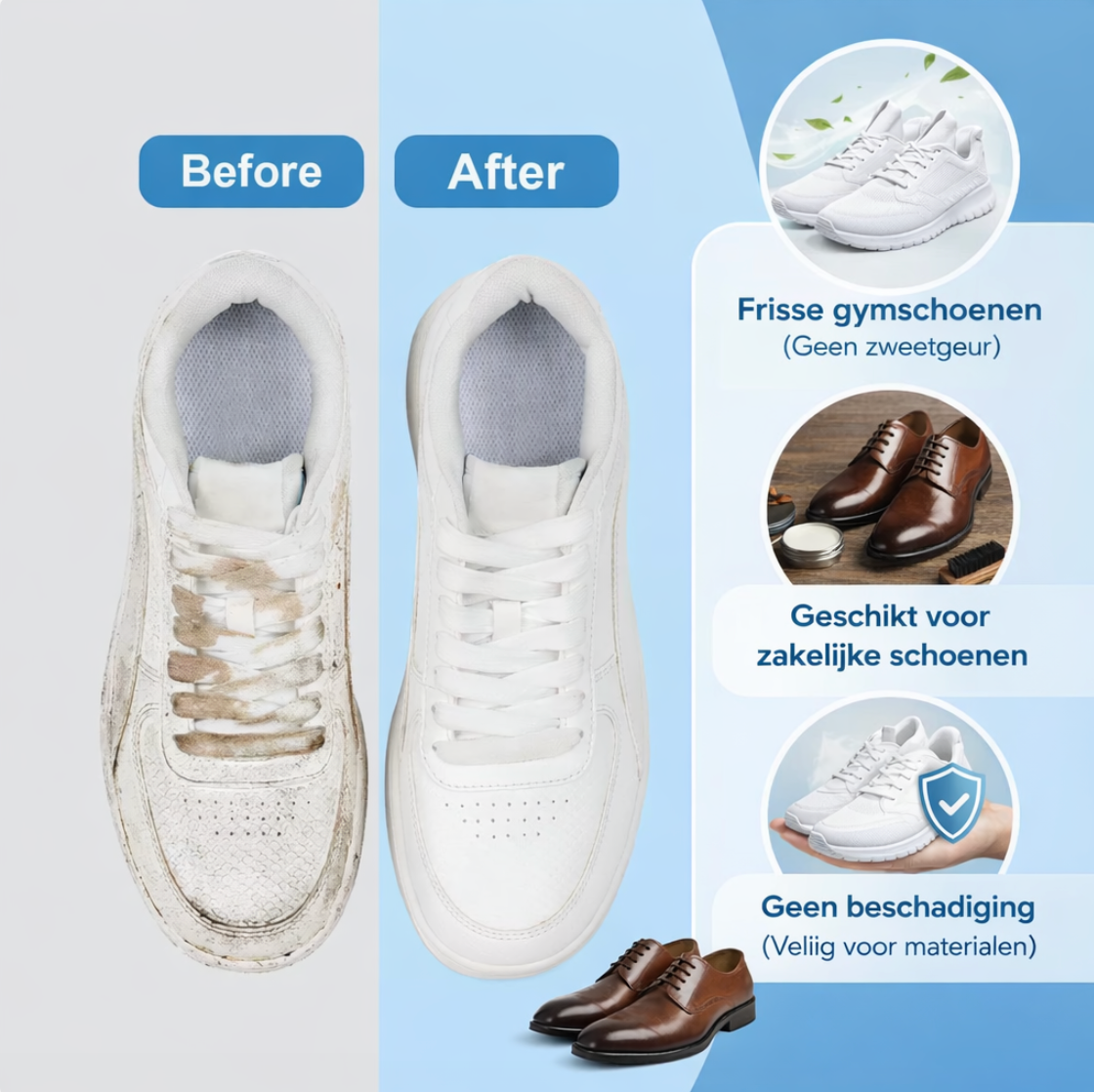 Was al je schoenen en laat ze weer stralen. Een schone schoen maakt zoveel uit. Dit kan veilig en effectief met CleanStep®. Het verwijders 99% van alle vuil en maakt je schoenen geurvrij!